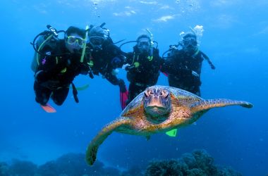 A group of very excited scuba divers with Great Adventures Cruises at Green Island were treated to a…
